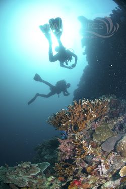 Taucher und Wracks